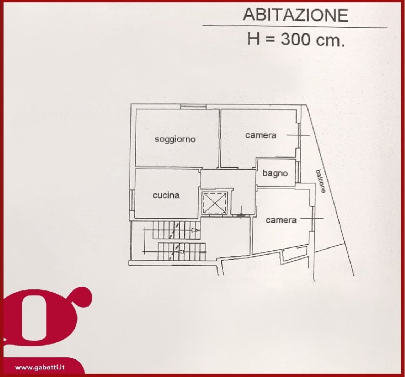 L’immobile di 75 mq è internamente composto da: ingresso, cucina abitabile, soggiorno, due camere da letto, ripostiglio e bagno.
