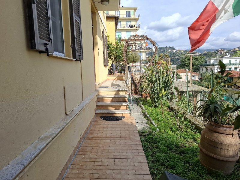Proponiamo in vendita un quadrilocale vista mare in buono stato al piano terra di una villa tri familiare con corte esterna di proprietà di circa 100mq. L'alloggio è composto da: ingresso su ampio e luminoso soggiorno, una cucina abitabile con accesso all'area esterna, un disimpegno che porta alle due camere da letto di cui una singola e una matrimoniale e infine un bagno con box doccia. A completare la proprietà vi è una cantina. Il riscaldamento è autonomo, garantito da termosifoni, e non sono previste spese condominiali. Per accedere alla proprietà, è necessario percorrere una scalinata composta da circa 20 gradini. Possibilità di acquistare in adiacenza un posto auto chiuso al prezzo di 25 000 euro. L'immobile si trova in zona tranquilla vicino ai principali servizi. Per informazioni e per fissare un appuntamento atto a visitare questa interessante proposta immobiliare si prega di telefonare al Geometra Domenico Borla Cell 3472628618 – Uff: 0184/990791