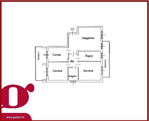 L’immobile è composto dall' ingresso su un ampio soggiorno, dal quale si accede a alla cucina abitabile e al disimpegno che porta alle due camere da letto di buona metratura e ai doppi servizi finestrati. Completano la proprietà un terrazzo e un balcone.