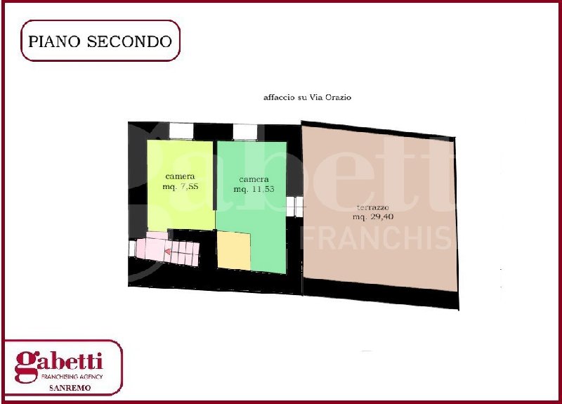 La camera da letto, spaziosa e ben illuminata, è dotata di un ripostiglio interno che offre praticità e spazio aggiuntivo. Dalla camera si accede a un balcone privato affacciato su un cortile di proprietà di circa 42 mq, in cui è possibile godere momenti di relax. Inoltre, il balcone offre una vista sul secondo ingresso da Via Orazio. Un ulteriore scala interna porta all’ultimo piano della casa dove troviamo due piccole camere da letto, che offrono diverse possibilità di utilizzo, e un generoso terrazzo di 29 mq. da cui si gode una magnifica vista sul mare e sul Golfo di Ospedaletti. Questo spazio esterno rappresenta un'opportunità unica per trascorrere momenti all'aperto e godere della bellezza dei paesaggi circostanti. È importante sottolineare la possibilità di realizzare una terrazza sopra il tetto, grazie alla conformazione del piano, ampliando così ulteriormente gli spazi all’aperto.