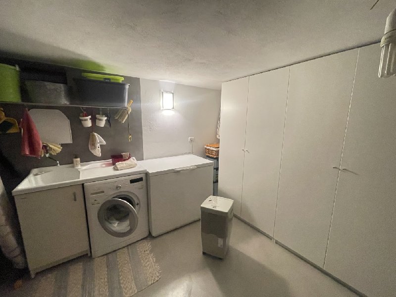 Al piano terra è presente ampio vano adibito attualmente a tavernetta/locale di deposito completo di finiture e complementi d’arredo. Completano la pianta del piano terra un bagno, dotato di tutti i servizi igienici, un locale tecnico e ulteriore locale deposito, oggi utilizzato quale locale lavanderia. Si ritiene presumibile possibilità di operare cambio di destinazione d’uso trasformando il piano terra in appartamento tipo monolocale.
